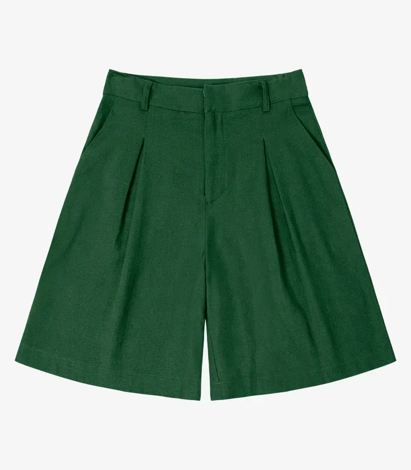 Bemuda Feminina Em Linho Com Bolsos Endless Verde