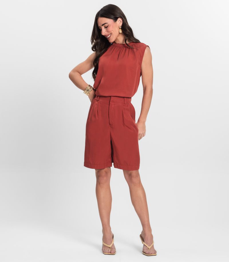 A Bermuda Feminina com Bolsos Endless é confeccionada em tecido tencel twill, que oferece conforto, leveza e toque macio. Possui bolsos faca na parte da frente, práticos e estilosos, além de passantes para cinto que permitem composições versáteis. A braguilha com zíper garante um fechamento funcional e discreto. Ideal para looks casuais e elegantes, é a peça perfeita para quem busca praticidade com um toque de sofisticação no dia a dia.