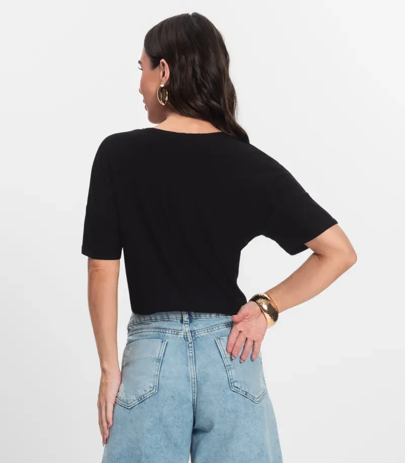 FemininoBlusas e CamisetasManga CurtaBlusa Feminina em Viscose Endless Preto