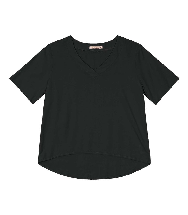 Blusa Feminina Endless, desenvolvida em Viscose Khyara. Possui manga curta, decote V com detalhes em pesponto. Alongada na parte de trás. Peça básica e confortável, ideal para o dia a dia! Combine com: jeans e sapatilhas. Composição: 100% Viscose