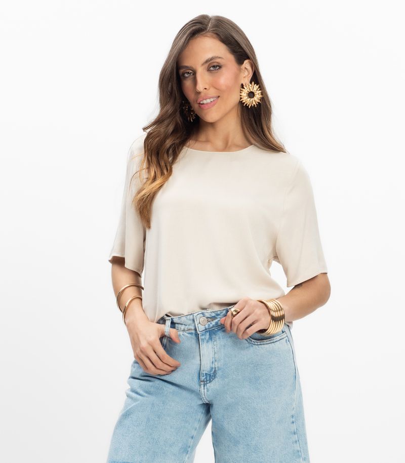 Blusa feminina Endless, confeccionada em elegante Viscose Double Yarn Solid. O modelo apresenta decote arredondado com revel entretelado e pesponto de beira, garantindo sofisticação ao acabamento. As mangas e o comprimento são finalizados com bainha na barra para caimento perfeito, enquanto as costas lisas conferem leveza e elegância atemporal à peça.