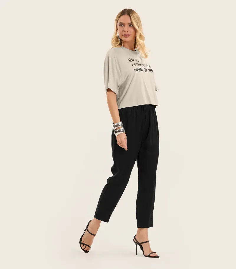 A Calça Feminina em Alfaiataria Endless é confeccionada em tecido alfaiataria favo, garantindo conforto e sofisticação. Seu design inclui cós com elástico, proporcionando ajuste perfeito e praticidade no uso diário. A peça não possui bolsos, o que realça a modelagem clean e moderna, ideal para quem busca um visual elegante e minimalista. Versátil, é perfeita para compor looks formais ou casuais com toque contemporâneo.