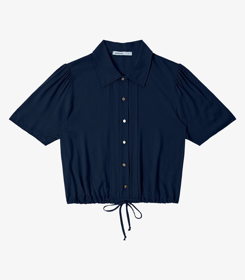 Camisa Feminina Endless confeccionada em viscose sarjada, com gola dupla estruturada e acabamento pespontado. Possui franzidos delicados nos ombros e nas laterais da cintura, vista funcional com cinco botões frontais, e túnel na cintura com amarração ajustável e ponteiras com nó. A peça ainda conta com prega virada para fora na barra frontal, unindo conforto e sofisticação em um visual moderno e elegante.