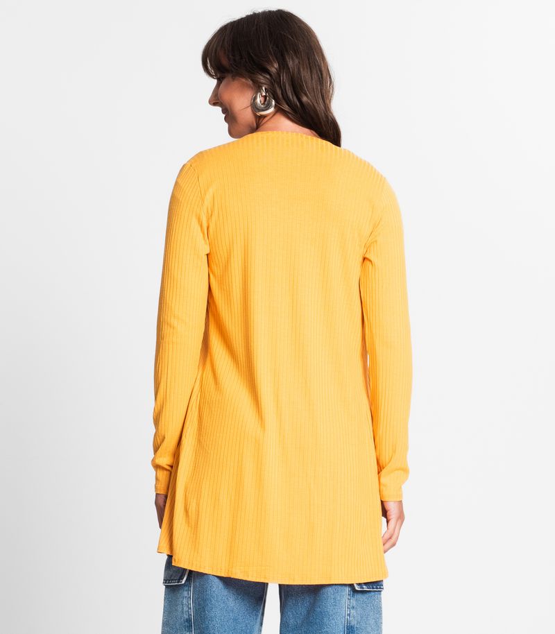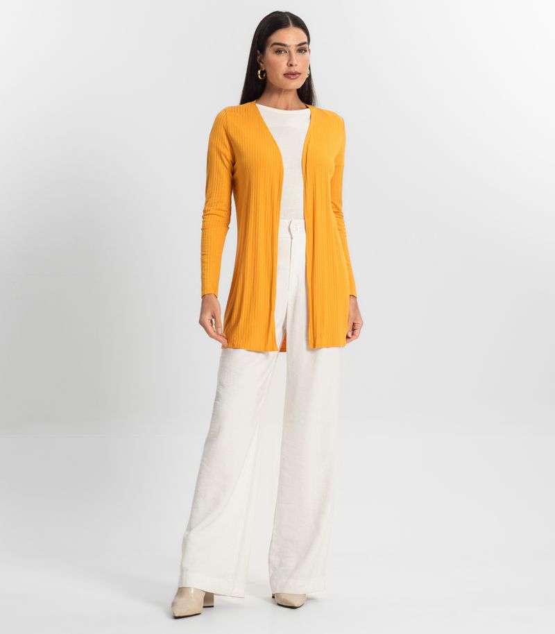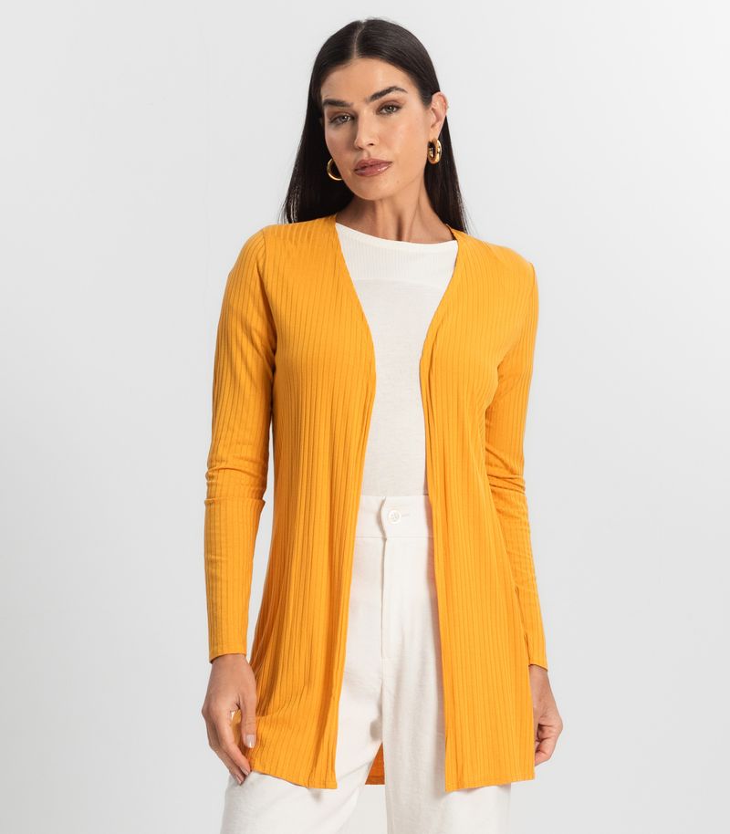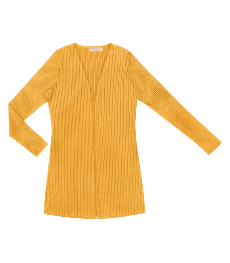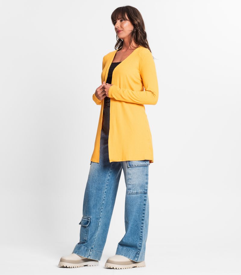 Cardigan Feminino Ribana Canelada Endless Amarelo