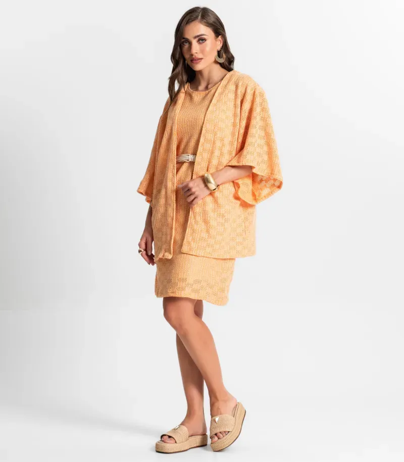 O Kimono Feminino em Tricot Endless é uma peça elegante e versátil, confeccionada em ricot duo, um material que combina maciez e durabilidade. Com design fluido e leve, o kimono oferece conforto e sofisticação para diversas ocasiões. Ideal para complementar looks casuais ou mais refinados, ele traz um toque de modernidade e estilo. Sua modelagem solta e o toque suave do tricot tornam a peça perfeita para transitar entre diferentes estações, mantendo o charme e a praticidade.