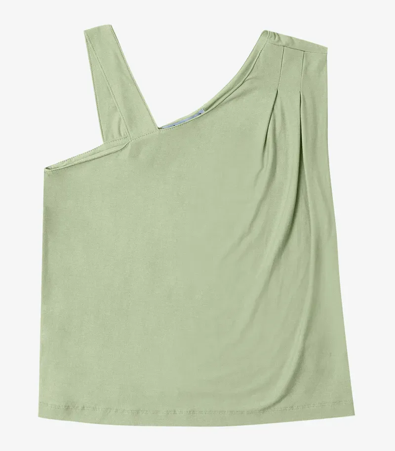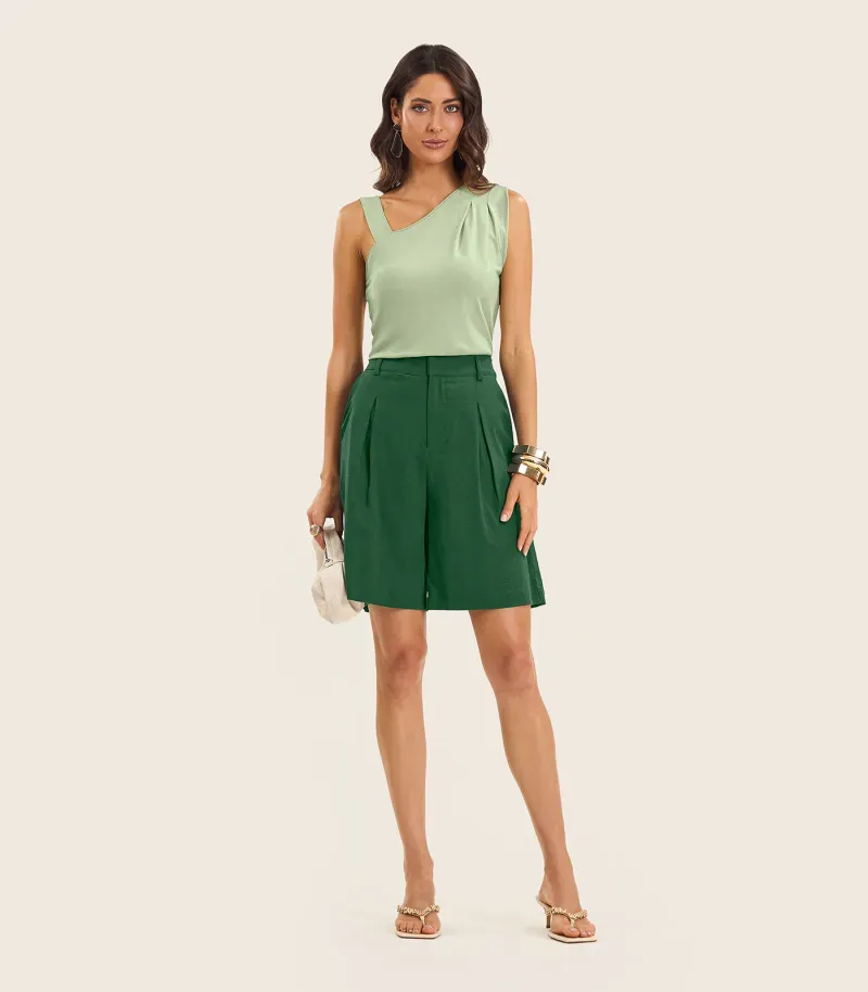 A Regata Feminina Endless é confeccionada em viscose creponada, com modelagem moderna e assimétrica, trazendo charme e leveza. Possui uma alça larga com detalhe pespontado e duas pregas na parte da frente que valorizam o caimento. O decote é assimétrico, com acabamento interno limpo e bem estruturado, oferecendo conforto e elegância. A barra tem acabamento duplo para mais durabilidade, sendo perfeita para looks casuais com um toque sofisticado.