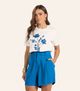 T-shirt feminina Endless, confeccionada em meia malha com detalhes em ribana. O modelo apresenta decote levemente arredondado em ribana com friso e reforço nas costas, além de estampa frontal combinada a bordados em linha e lantejoulas, que agregam sofisticação. Possui mangas curtas com bainha, comprimento até o quadril também finalizado com bainha e costas de base lisa, unindo conforto e estilo refinado.