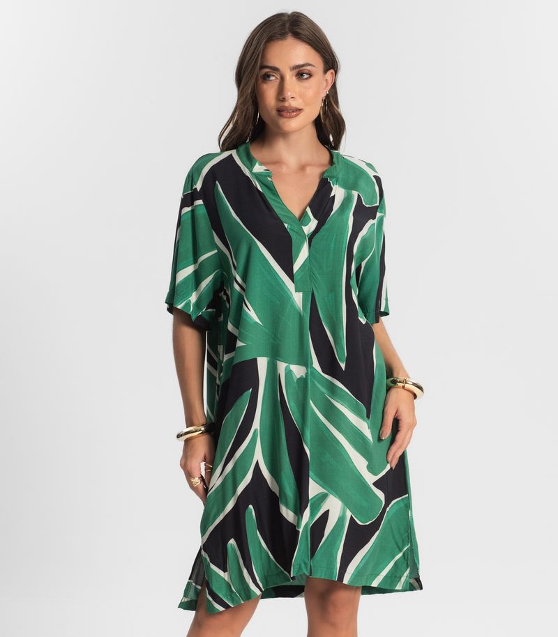 O Vestido Curto Estampado Endless é confeccionado em viscose Khyara, um tecido leve e fluido que proporciona conforto e frescor. Seu peitilho talhado oferece um toque de sofisticação, enquanto a estampa digital exclusiva garante um visual vibrante e moderno. A abertura lateral dos dois lados confere um detalhe único e facilita a movimentação. Ideal para o verão, o vestido é perfeito para ocasiões casuais ou eventos ao ar livre, garantindo estilo e liberdade.