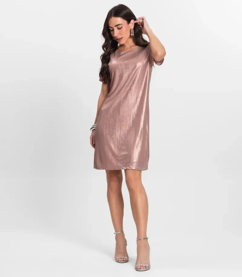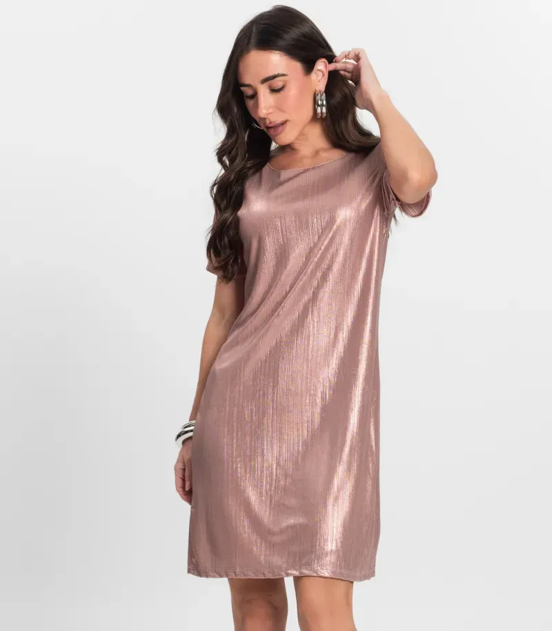 O Vestido Feminino Metalizado Endless é confeccionado em malha plissada shiny, proporcionando um brilho sofisticado e moderno. Com forro embutido e forro curto, oferece conforto e segurança sem perder a elegância. Ideal para ocasiões especiais, este vestido destaca-se pelo seu design atraente e caimento impecável. Versátil e estiloso, pode ser combinado com diversos acessórios para criar looks deslumbrantes. Perfeito para quem deseja brilhar com charme e sofisticação.