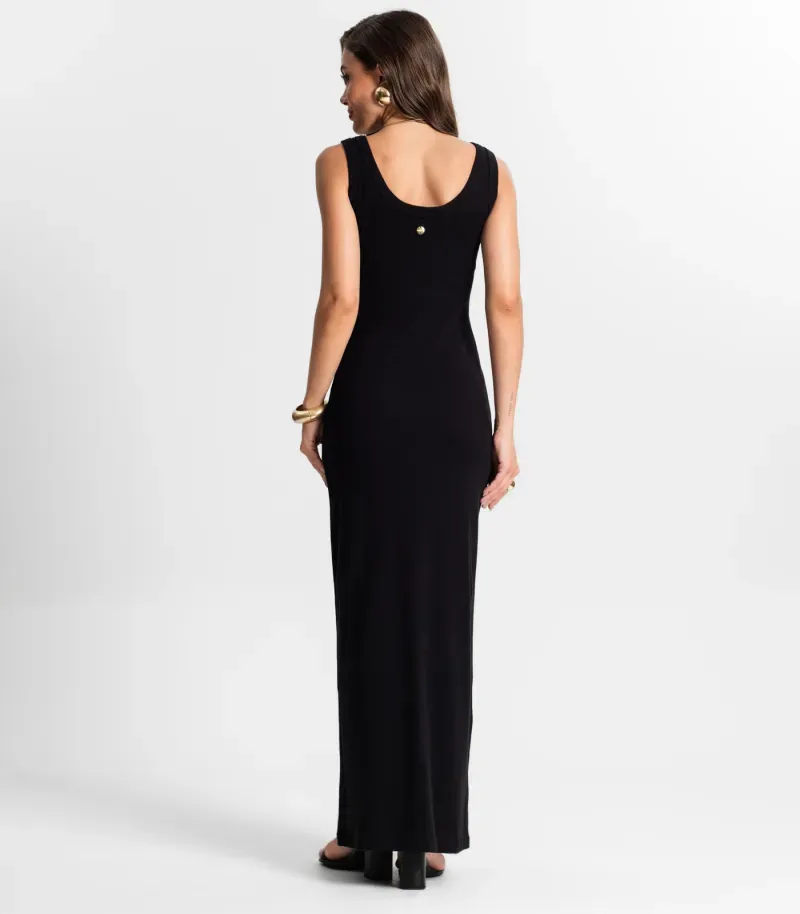 Vestido Midi De Ribana Feminino Endless Preto