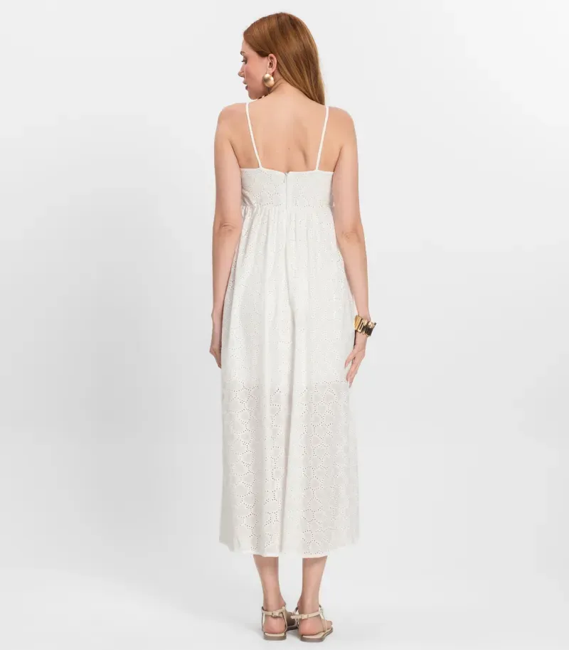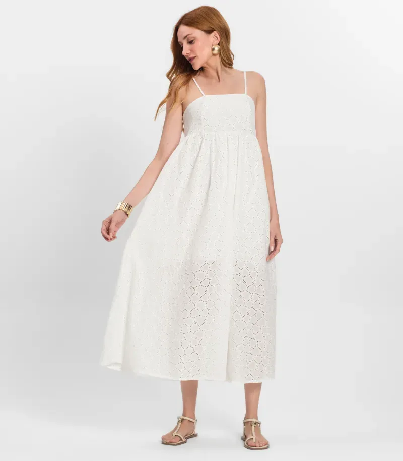 O Vestido Midi Feminino em Laise Endless é confeccionado em laise com delicados desenhos de corações, unindo charme e romantismo. Possui decote quadrado que valoriza o colo, busto com forro para maior conforto e segurança, além de forro curto na saia, que garante leveza ao visual. O zíper invisível nas costas oferece um acabamento discreto e elegante. Ideal para ocasiões especiais, é a escolha perfeita para um look feminino e sofisticado.